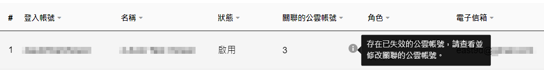 為不同的使用者設定不同的 角色 與 關聯公雲帳號 ,讓您更有效率的控制權限。您可以只開放特定使用者完整存取所有公雲帳號,而其他使用者僅允許檢視單一公雲帳號的資訊;或是為帳務人員指派使用者角色 帳單管理者 ,為客服人員指派使用者角色 支援中心管理者,以此區分功能性。